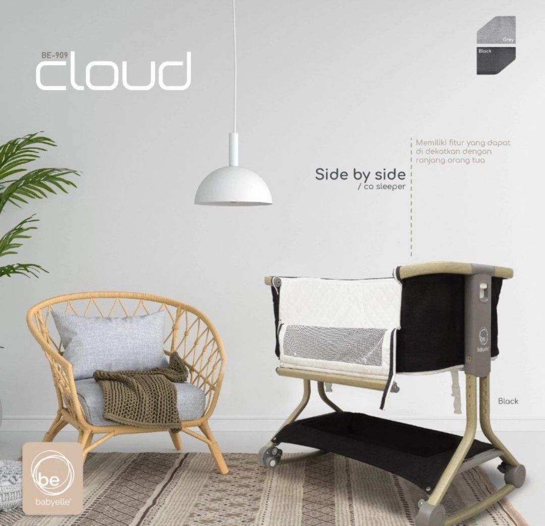 Bedside baby crib yang memiliki fitur ayun, Babyelle Cloud dengan 2 pengaturan posisi bed yaitu ranjang gantung (bassinet) dan bisa diturunkan kebawah menjadi baby box, 6 pengaturan ketinggian dapat disesuaikan dengan tinggi tempat tidur dewasa agar bayi dapat selalu dapat berdekatan dengan orangtua. Sisi samping dapat dibuka untuk memudahkan mengeluarkan bayi dari crib, akan sangat membantu terutama bagi ibu yang baru selesai melahirkan.