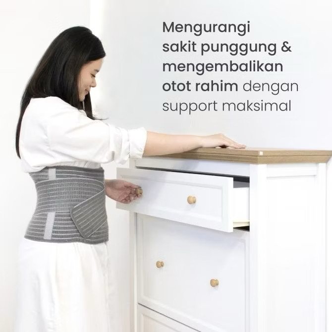 - Mendukung rahim, perut, panggul, punggung, dan tulang belakang dengan menerapkan kompresi pada inti Anda dan menahan dinding rahim yang membesar, kulit kendur, dan otot kembali ke tempatnya pascapersalinan.