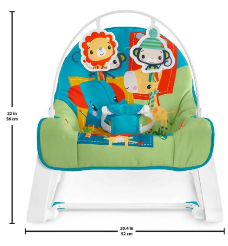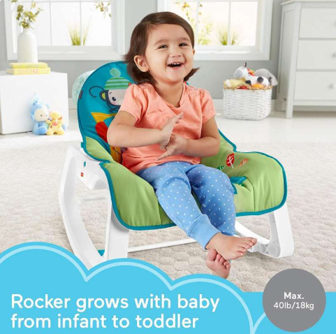 Fisher-PriceĀ® Infant-to-Toddler Rocker adalah kursi bayi portabel yang nyaman yang dimulai sebagai rocker bayi atau kursi stasioner dengan bar mainan kelelawar di atas kepala.